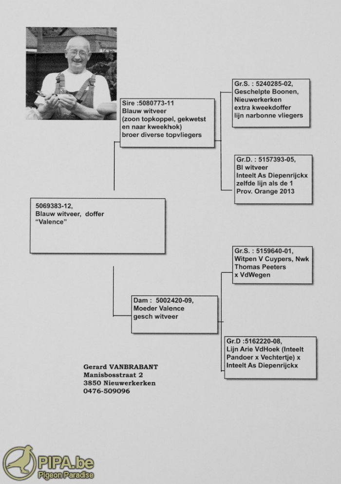 2014年比利時瓦朗斯全國冠軍鴿B12-5069383 灰白羽 公 血統書