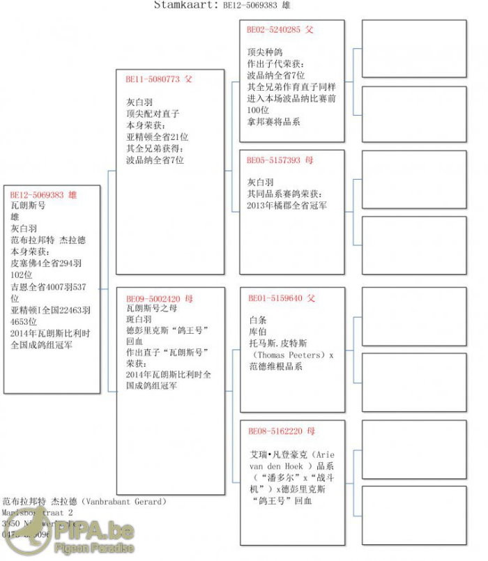 鴿主:範布拉邦特 傑拉德(Vanbrabant Gerard)