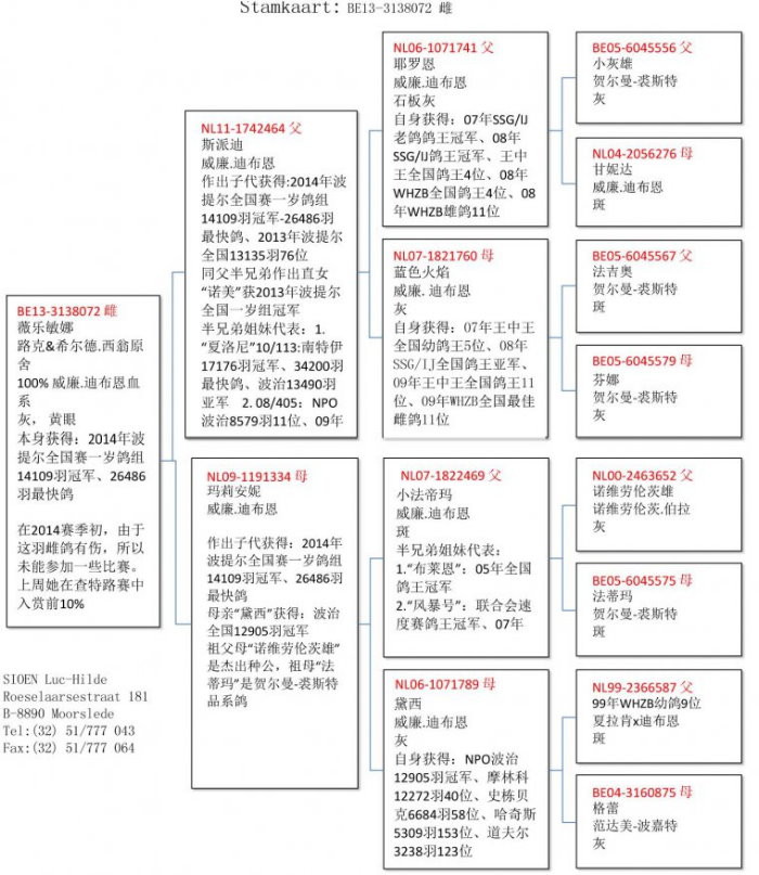 2014年波提爾國家賽26.486羽總冠軍鴿B13-3138072灰母 的中文翻譯血統書
