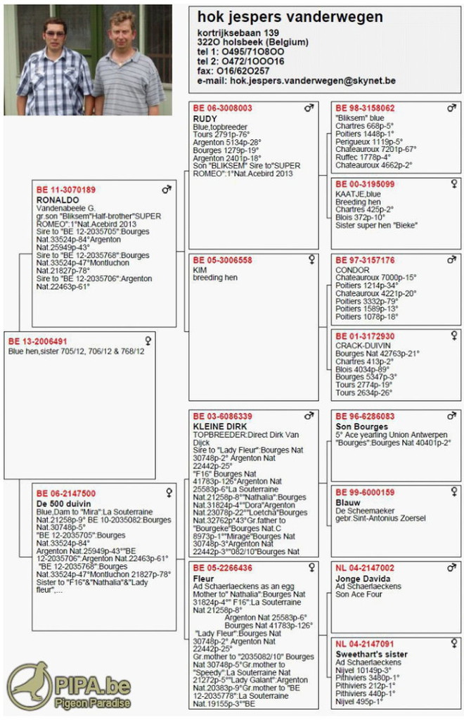 傑斯普-範德維根包攬2014年拉索特年全國賽一歲鴿組冠軍(總數16.449羽最高分速)+亞軍: