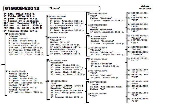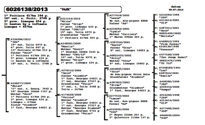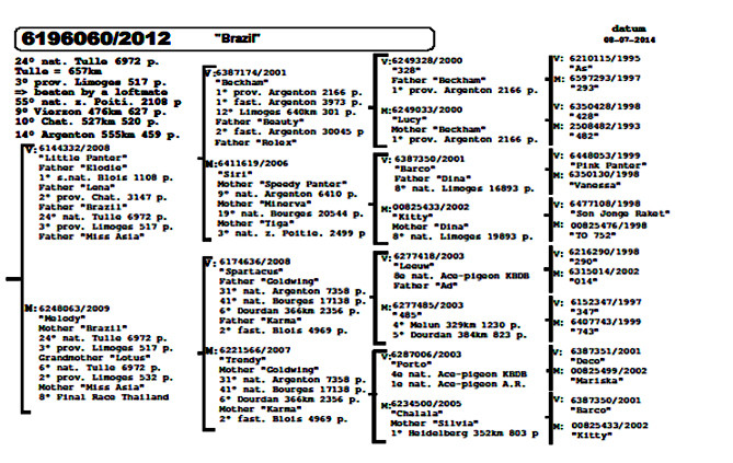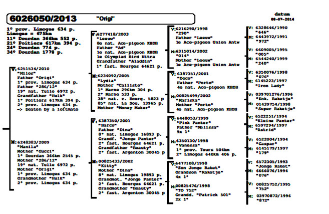他們的這5羽最優秀的成鴿及一歲鴿在某方面都彼此有著絲縷聯繫。他們的血統皆出自"曼波"、"巴克"、"獅王號"或者"貝克漢",這些都是頂尖種鴿。這些血統很容易結合並組成強大的配對。這些配對作出的後代都可以在重要時刻發揮關鍵作用。事實上,喬斯及拉爾斯•佛卡門的鴿子即使在最惡劣的天氣條件下也能發揮出色,他們似乎更喜歡挑戰高難度的比賽。
