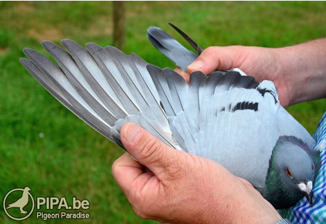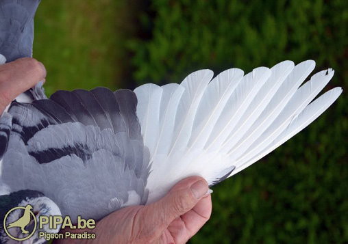 波治II全國成鴿組8.008羽冠軍:B12-2012411 公.灰白花頭 翅羽