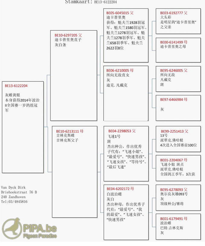 2014年比利時波治 II全國(一歲鴿組)10.114羽"冠軍:B13-6122204灰母 血統書