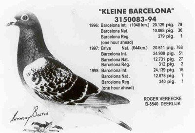 我們必須拿出一羽鴿子,那就是 “小巴賽隆納”, 它也許是巴賽隆納賽上有史以來最佳賽手之一。它連續三年在巴賽隆納國家賽和國際賽賽上高位入賞。