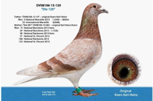 幾天之前,我們剛剛報導了德國的強豪---卡爾-漢斯.科爾摘得聖維仙國際冠軍( 2013年聖維仙國際賽10.944羽總冠軍DV08106-12-117灰母 "瑪麗號",創下平均分速1008.53 米/分,是唯一分速突破1.000公尺/分的冠軍鴿)。上週末他又獲得了一個冠軍。這一次是全國冠軍,而令人相當震撼的是他還包攬了全國賽名列前茅的前6位佳績。