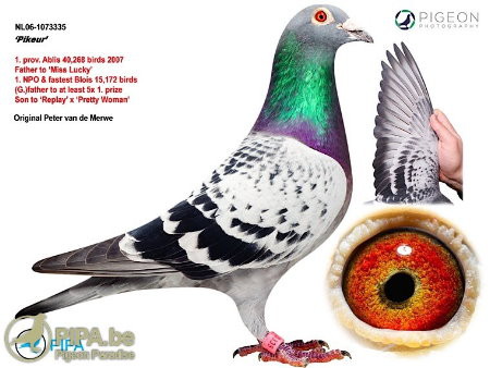 "重播號"還作育直子"皮克"(Pikeur NL06-1073335)獲得阿碧斯40.268羽冠軍,而"皮克"作育的子代"幸運小姐"(Miss Lucky NL08-1545338)獲得布洛瓦第2區15.172羽冠軍。