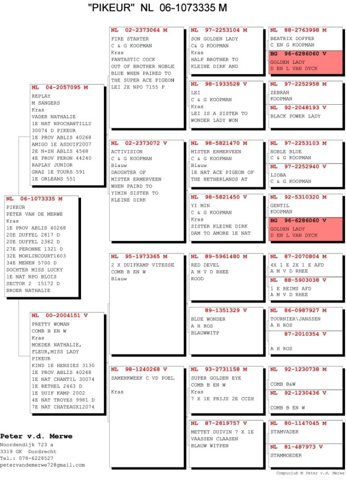 這家鴿舍今天的很多成功戰將都是世界著名種鴿"重播號"的後代,很多都成為國際鴿壇著名賽鴿。多數鴿友對"重播號"(Replay NL 04-2057095)非常熟悉,這是100%考布曼血統鴿,出自馬歇爾.山格斯原舍交換而來,他是一羽獨一無二的天賦種鴿。
