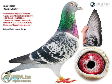 馬丁.胡斯曼(Maarten Huijsman), 荷蘭升起新星,聽說了這羽神奇鴿,2010年他來到派特的鴿舍,希望能夠引進一些他最優秀的鴿子。派特還有一些另外的"重播號"子代,他決定借給馬丁。結果非常令人滿意:晚生雄鴿"年輕重播號"(NL09-1192917 Replay Jr.)成為荷蘭最優秀的種鴿之一,很短時間內便作育了一些成功的後代。他們贏得了很多優秀成績: