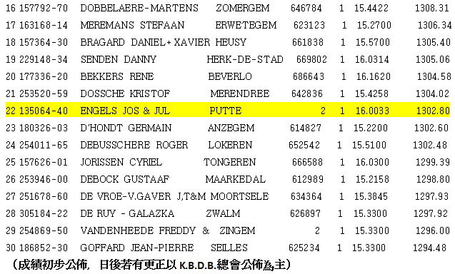 VANDENHEEDE FREDDY & ZINGEM)鴿舍入賞8位、29位-----等。