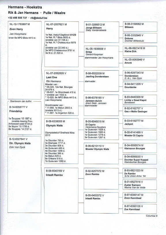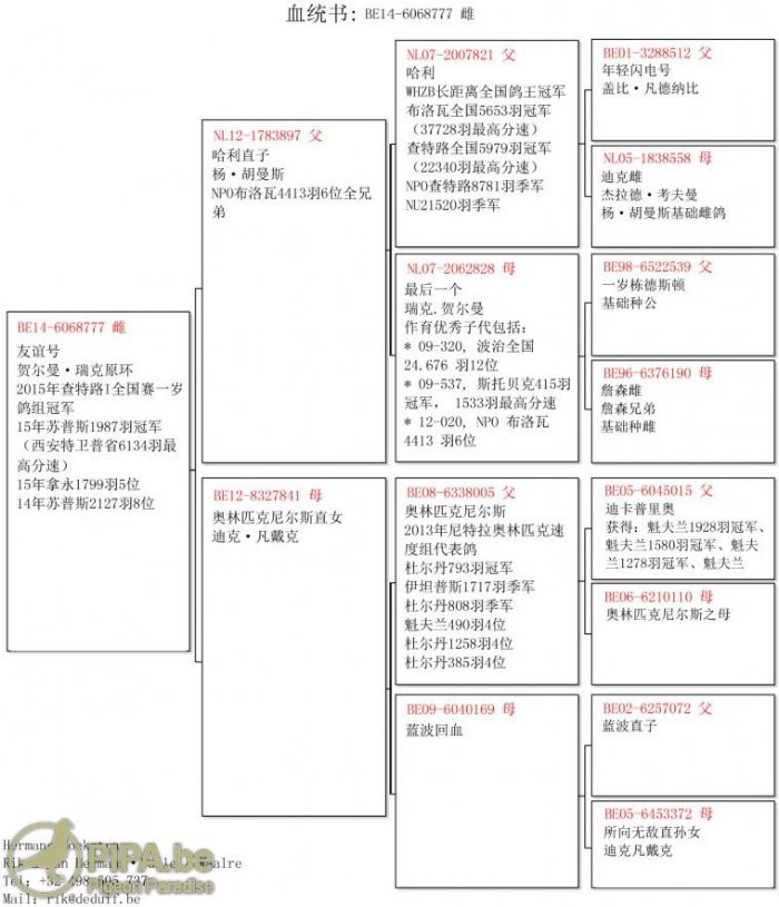 父鴿:NL-12-1783897 為世界名鴿"哈利號"直子.楊.胡曼斯鴿舍作出