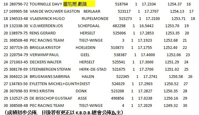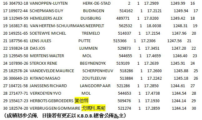 【國外賽鴿訊息】