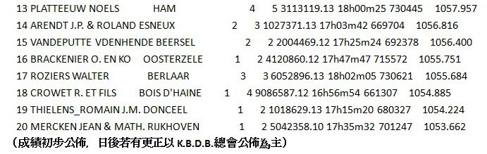 比利時蒙特利馬全國賽"一歲鴿組1.512羽"冠軍: