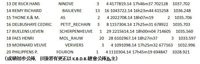 蒙特利馬"一歲鴿組1.512羽"5位B14-2014508班母