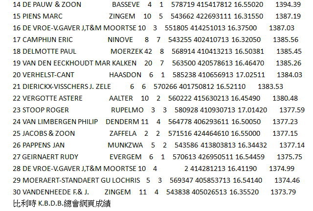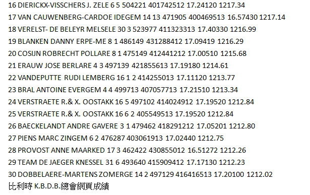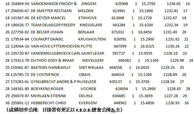 俱樂部:153羽 一歲鴿組1-2-5-6-7-9-13-14-15-16-19-20-24-26-28-30-31-32-34-35-36-45- 24/32