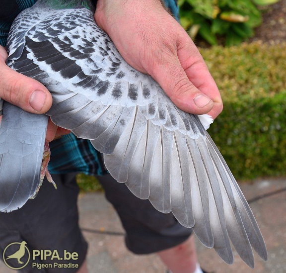 B14-4102124班白羽.公,比利時賈納克全國賽總數8.436羽總冠軍鴿 翅羽