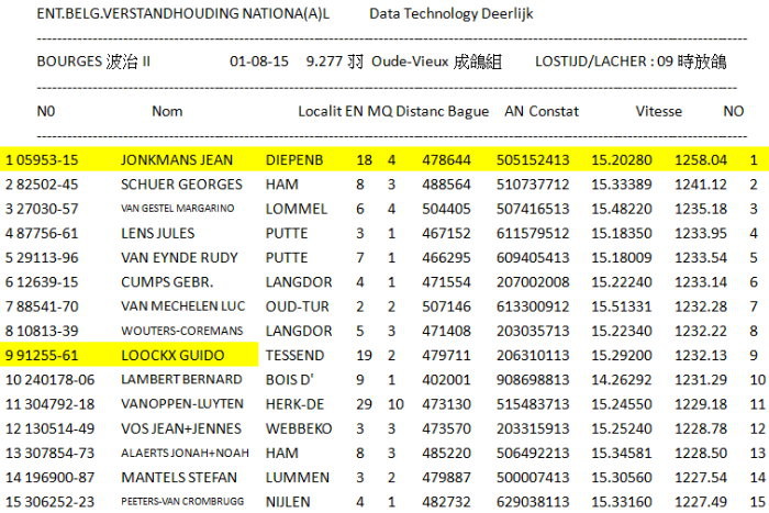 波治II (Bourges II)國家賽(成鴿組9.277羽)冠軍: