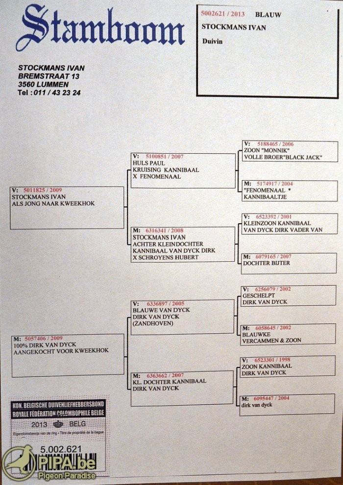 斯托克曼 伊萬(Stockmans Ivan)選手鴿舍