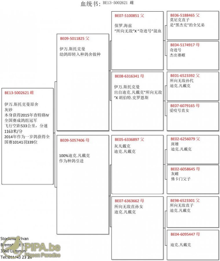 2015年比利時查特盧斯IV(Chateauroux IV)成鴿組1.989羽全國冠軍鴿B13-5002621灰母血統書
