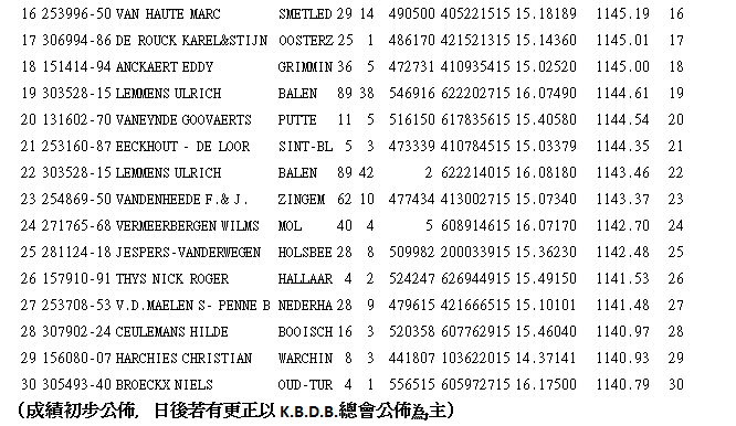 【國外賽鴿訊息】