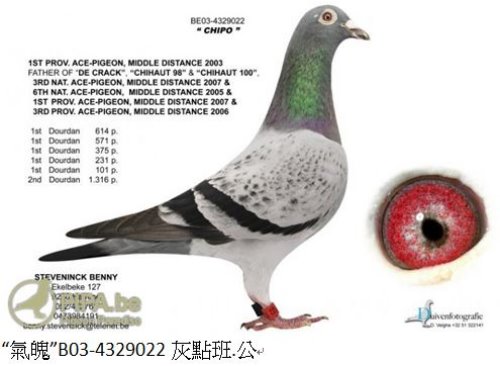 他的血系使得無數鴿舍走上了成功之路,而在他自己的鴿舍中,更是如此。