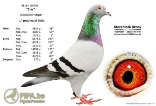 賓尼.史帝文在大區賽中至少6次入賞前10位,這其中有2次入賞全國前10位。請注意,本賽季的大部分比賽中,考慮到風向,他鴿舍的地理位置並不占優。儘管如此,他還13次入賞全國前50位及27次入賞全國前100位。