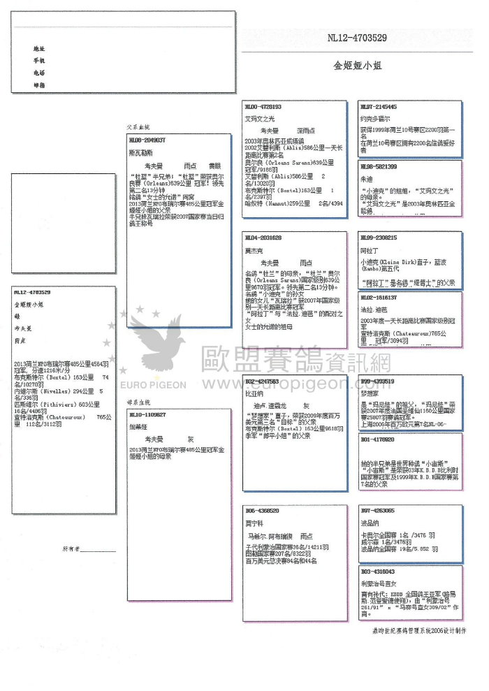 NL12-4703529♀班〔金吉拉小姐〕記錄鴿
