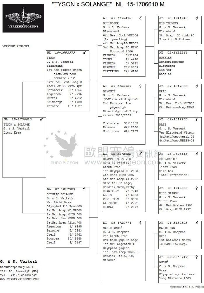 全場第一高價位$33.600歐元沃克父子鴿舍的『泰森』X『奧林匹克索蘭吉』,