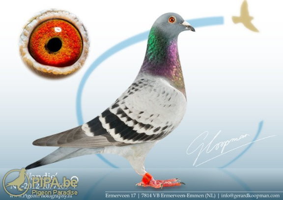 這羽雌鴿憑藉一項NPO冠軍成績結束了輝煌的賽季。2014年他已經獲得當日歸長距離NPO全國鴿王20位。2015年從4月25日開始她便作為傑拉德的第一指定鴿。萬迪的父親"BP先生"(NL09-1754567 Mister B.P)為一羽灰色雄鴿,為本.比伯(Ben Pieper)獲得不少於7項冠軍,包括南圖11.807羽冠軍,他還獲得2011年NPO全國中距離鴿王冠軍。"萬迪"的母親"卡莎瑞爾"(NL10-1109814 Cantharel)出自標誌種鴿"哈利"(NL07-2007621 Harry),"哈利"為楊.胡曼斯獲得2009年NPO全國當日歸長距離鴿王冠軍。"卡莎瑞爾"的母親"小瑪莉"(NL04-2031628 Marijke)。"哈利"和"小瑪莉"都是"小迪克"的孫代。