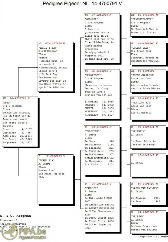 頂級鴿"瑪拉" NL14-4750791 灰母 血統書