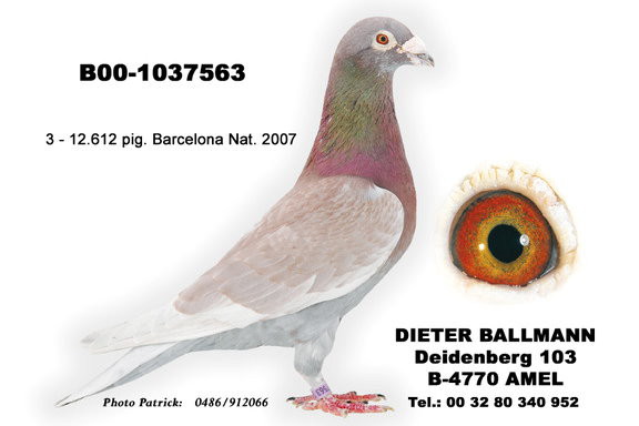 比利時的迪特.巴爾曼(Dieter Ballmann)鴿舍的"冠軍號"B07-1033043班公