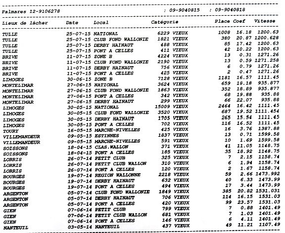 這次利蒙治全國賽中,狄洛克獲得了其賽鴿生涯中的第三項全國冠軍。他的出色發揮,足以使其名字成為比利時賽鴿運動中的響噹噹的金字招牌之一!