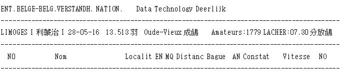 利蒙治I國家賽13.513羽冠軍-"利蒙治號"(The Limoges,BE12-9106278灰公)成績表