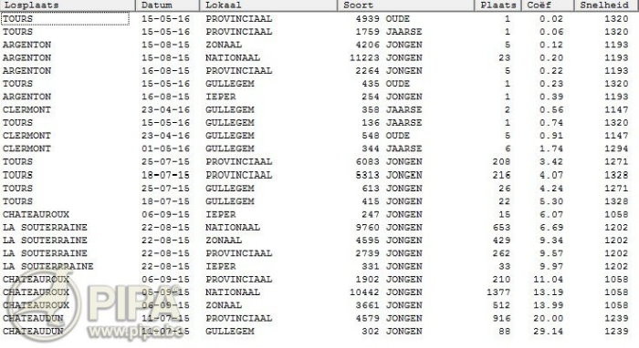 賽鴿被迫休息一周,因為6月4日的比賽取消,但是他們都參加了6月10日(週五)放飛地卡奧爾和查特路賽,由於上週末比賽取消,這場查特路賽的一歲鴿戰隊羽數比較多。事實上,2016年參賽鴿中越50%還沒有參加過全國賽。但是他們仍然很成功,你可以從成績看到: