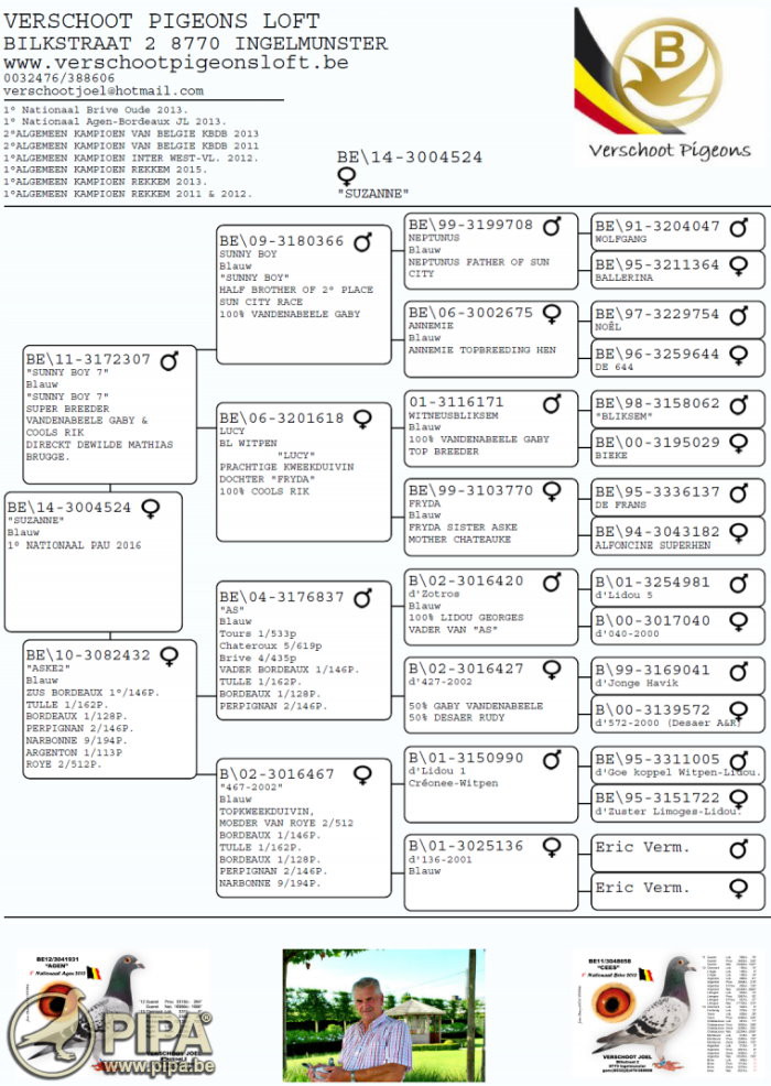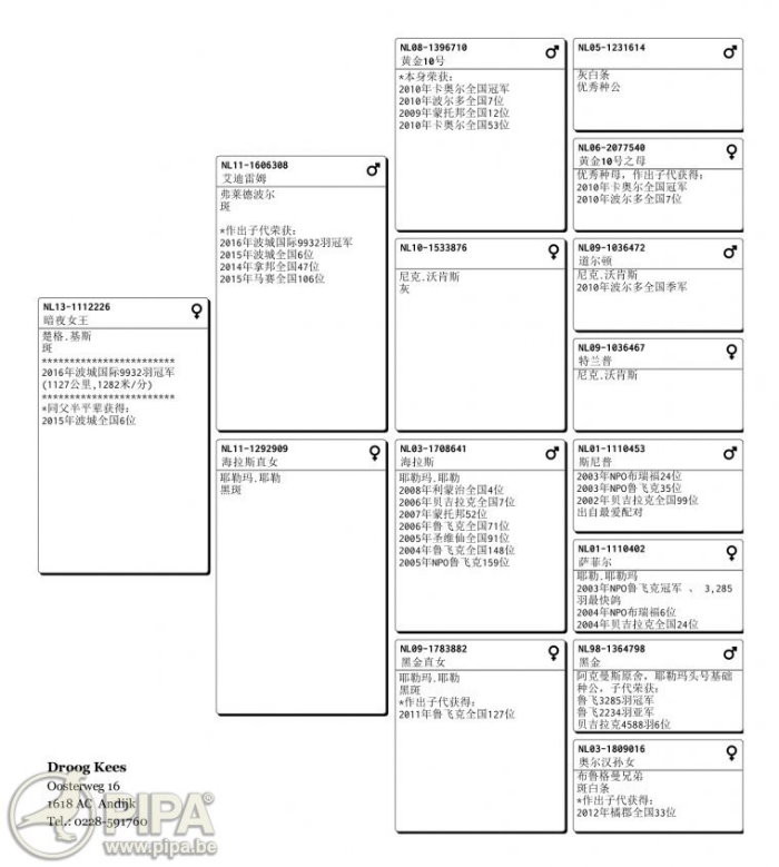 2016年波城國際賽比利時全國1.664羽冠軍B14-3004524灰母 血統書