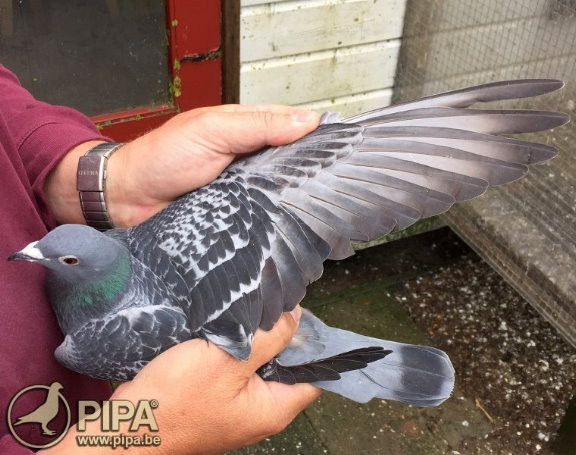 比利時全國1.664羽冠軍B14-3004524灰母 翅羽