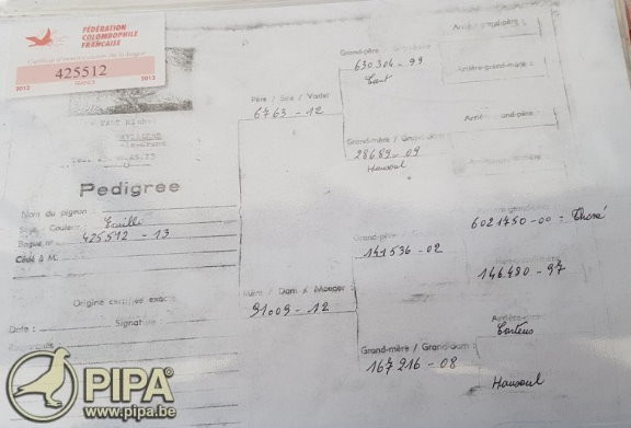波城法國全國2.862羽冠軍鴿F13-425512班公 血統書