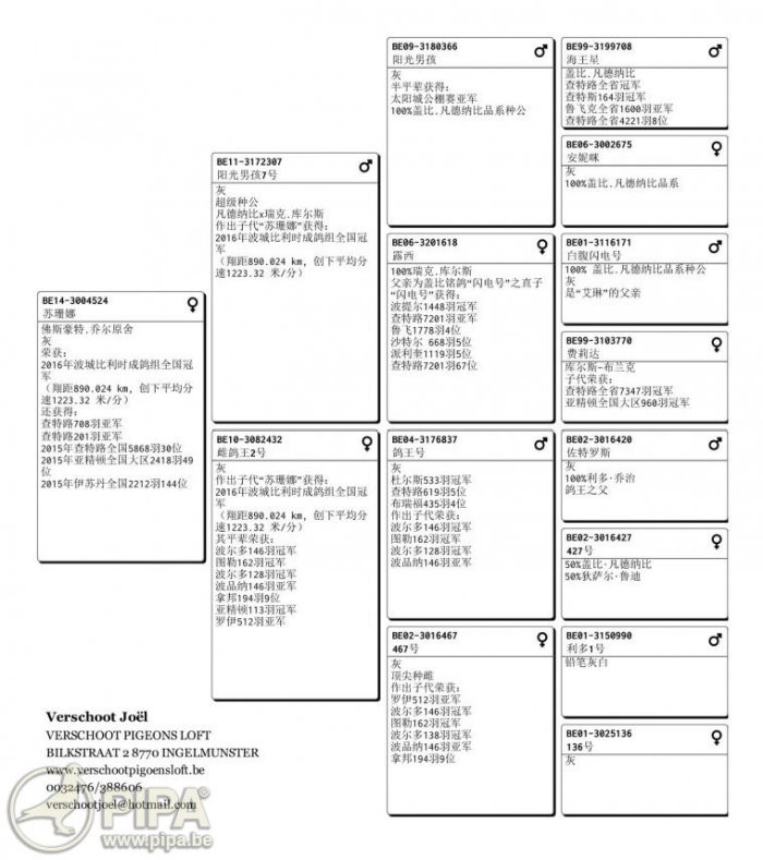 2016年波城國際賽比利時全國1.664羽冠軍B14-3004524灰母 中文翻譯血統書