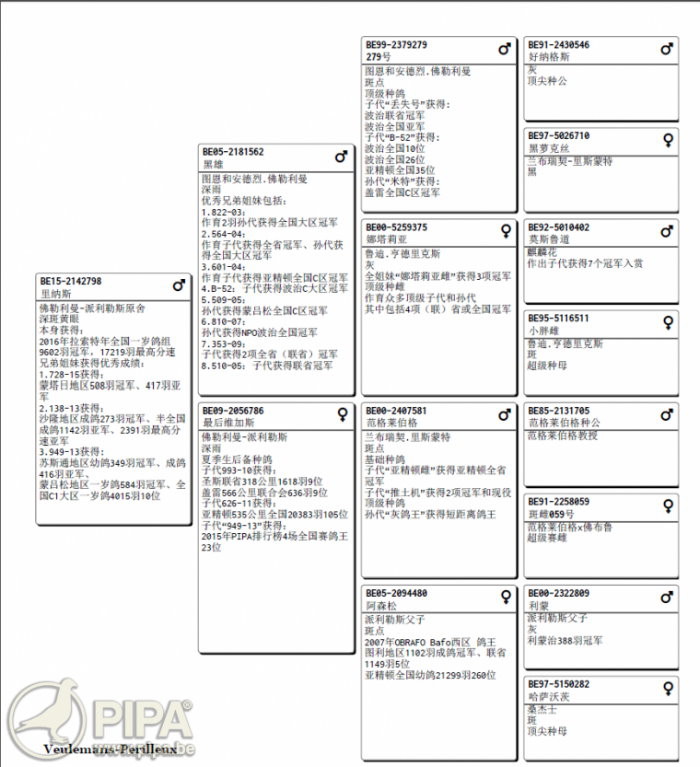 2016年拉索特年I全國賽成鴿7.617羽冠軍中文血統書資訊: