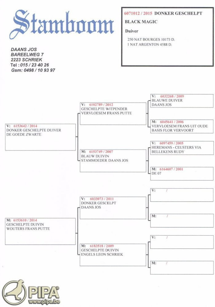 獲得亞精頓II (Argenton II)國家賽比利時全國"一歲鴿組4.588羽"冠軍為達恩斯.喬斯(Daans Jos)鴿舍,該舍冠軍鴿B15-6071012班公是在比利時時間8月13日(星期六)下午14時24分40秒歸巢,翔距545.621公里,創下平均分速1284.82 米/分。