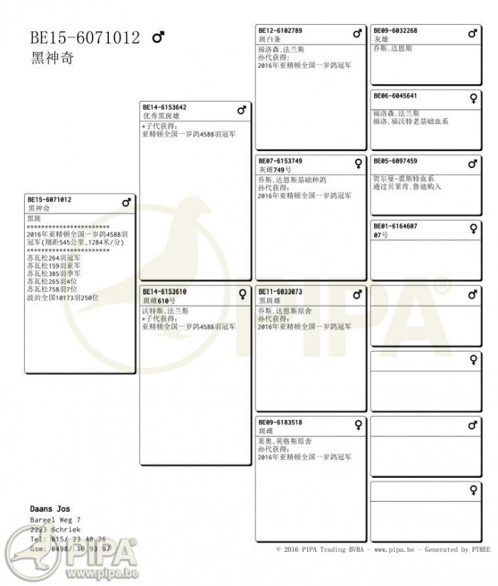 2016年亞精頓II全國賽一歲鴿組4.588羽冠軍 中文翻譯血統書