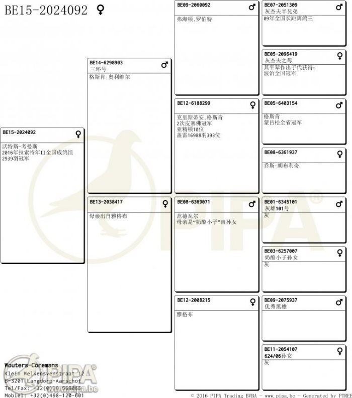 2016年拉索特年II全國賽"成鴿組2.939羽"冠軍B15-2024092灰母 中文翻譯血統書