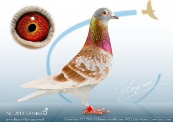 "紅色布倫斯"的子代NL12-4703485紅公,發揮著重要作用,贏得全國馬拉松鴿王26位。