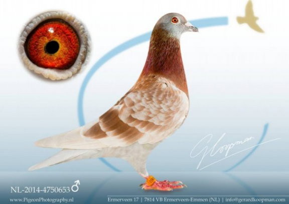 去年"紅色布倫斯"被引進到考夫曼鴿舍後迅速成為一羽寶貴種鴿。這家鴿舍的幾乎每羽成功賽鴿都與這羽種鴿有血緣關係。