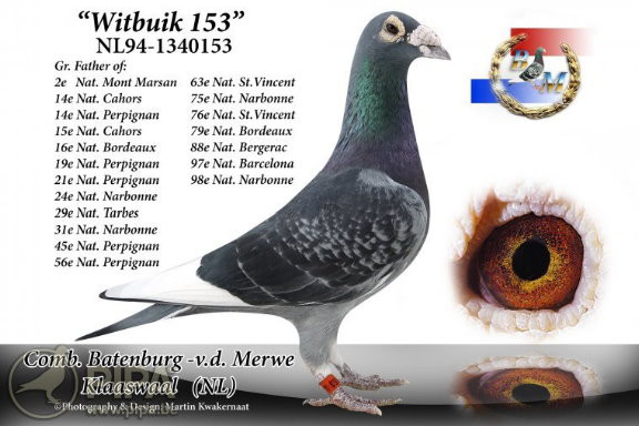 "白腹153"(NL94-1340153 Witbuik 153), 出自"白腹號"(NL81-1533120 De Witbuik)。他的後代與"新榮耀號"混血完美。