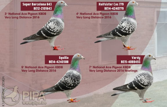 "佩姬"作育孫代獲得2016年KBDB全國超長距離一歲鴿組鴿王8位,由德克.狄羅斯(Dirk Deroose)使翔。
