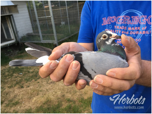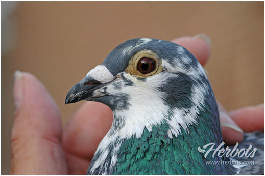 獲得利蒙治國家賽14,924羽冠軍鴿"洛特LOTTE" B15-6283779班白羽.母.眼睛