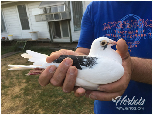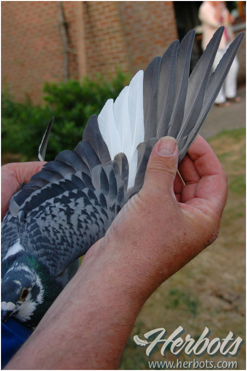 "白法洛克Witte Faroek"B08-6252152班白頭白羽:利蒙治國家賽全國冠軍的父鴿