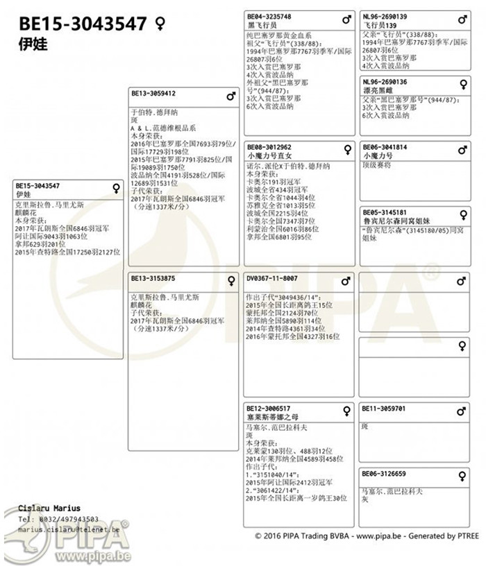 B15-3043547花母”伊娃”獲得2017年比利時瓦倫斯國家賽成鴿組6,846羽冠軍