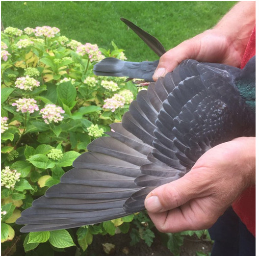 2017年波城國際賽11.164羽總冠軍鴿NL15-1609547黑班公 翅羽