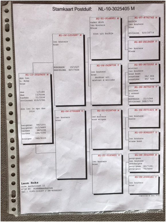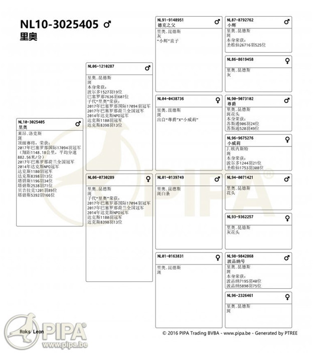 2017年巴賽隆納國際賽17.094羽總冠軍鴿NL10-3025405班公血統書